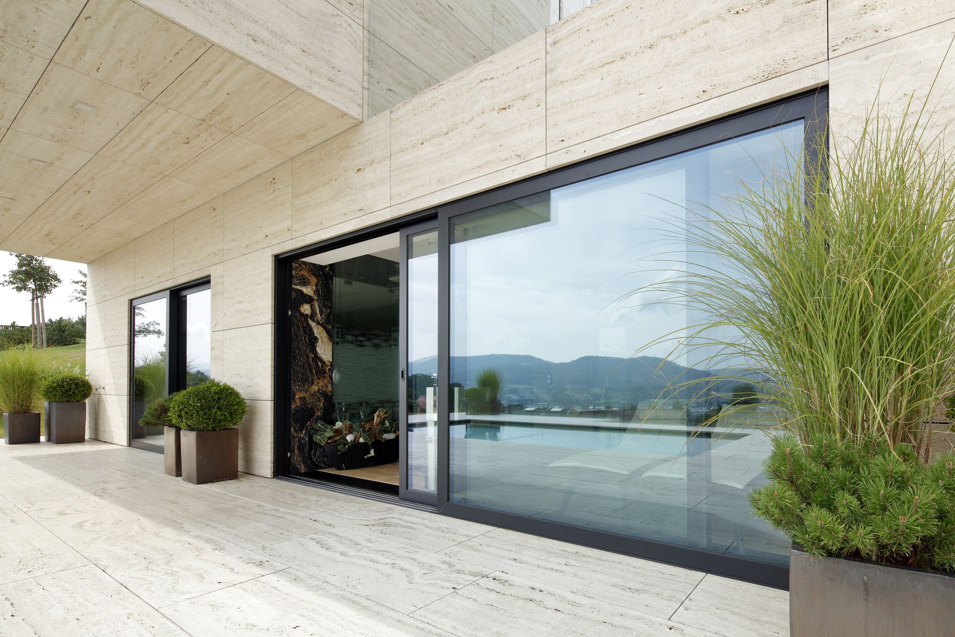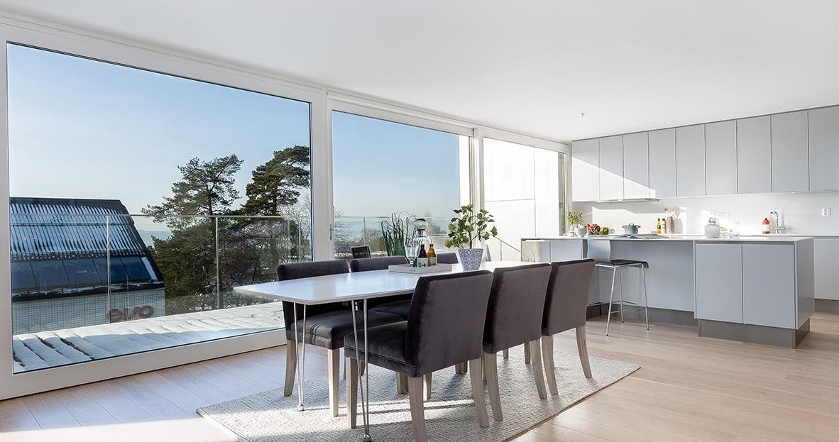 Vi produserer skyvedører i aluminium med Schüco-profiler og bredder opptil 6 meter. De stabile og sterke aluminiumsprofilene gjør det mulig å realisere store glassfelt og skape nærhet til hagen, terrassen eller balkongen. Schücos innovative profiler har et moderne uttrykk og passer perfekt for både privatboliger og næringsbygg