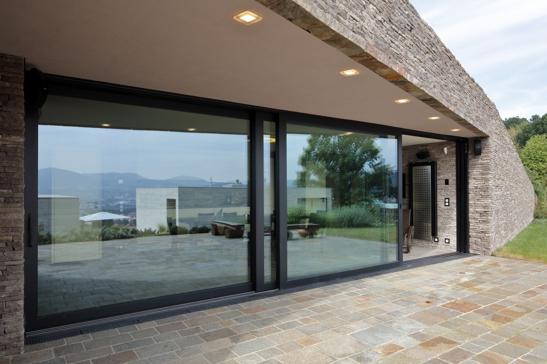 Den utvendige aluminiumskledningen gjør disse heve-skyvedørene værbestandige og tilnærmet vedlikeholdsfrie. Ved å kombinere tre og aluminium beholder dørene den varme følelsen på innsiden, men skaper samtidig et moderne uttrykk på utsiden. Vi produserer aluminiumskledde skyvedører på bestilling i store størrelser på opptil 9,9 meter.